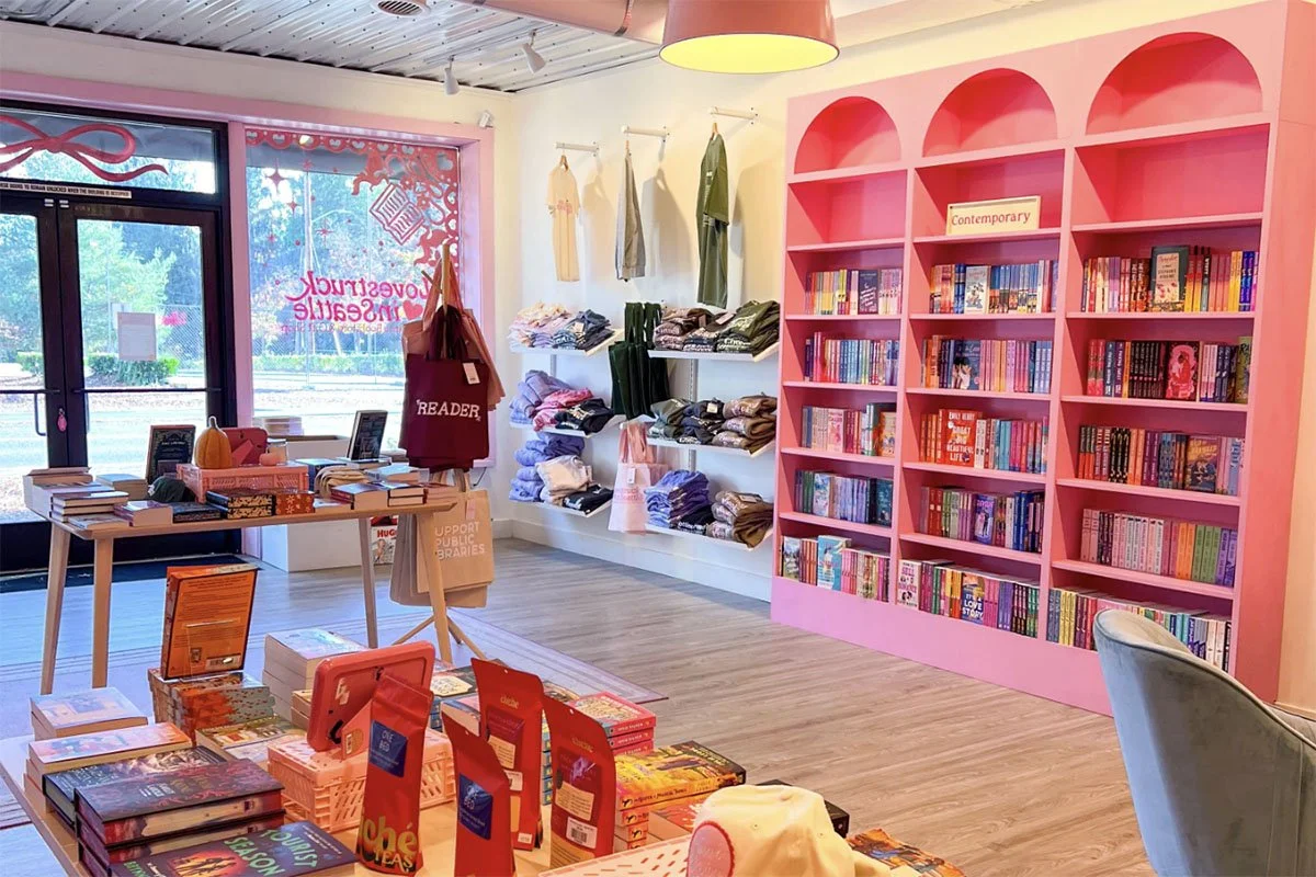 A destination book and bath shop with curated gifts and pop culture items. We specialize in local authors and artisans, and make our own line of bookish lotions and candles.